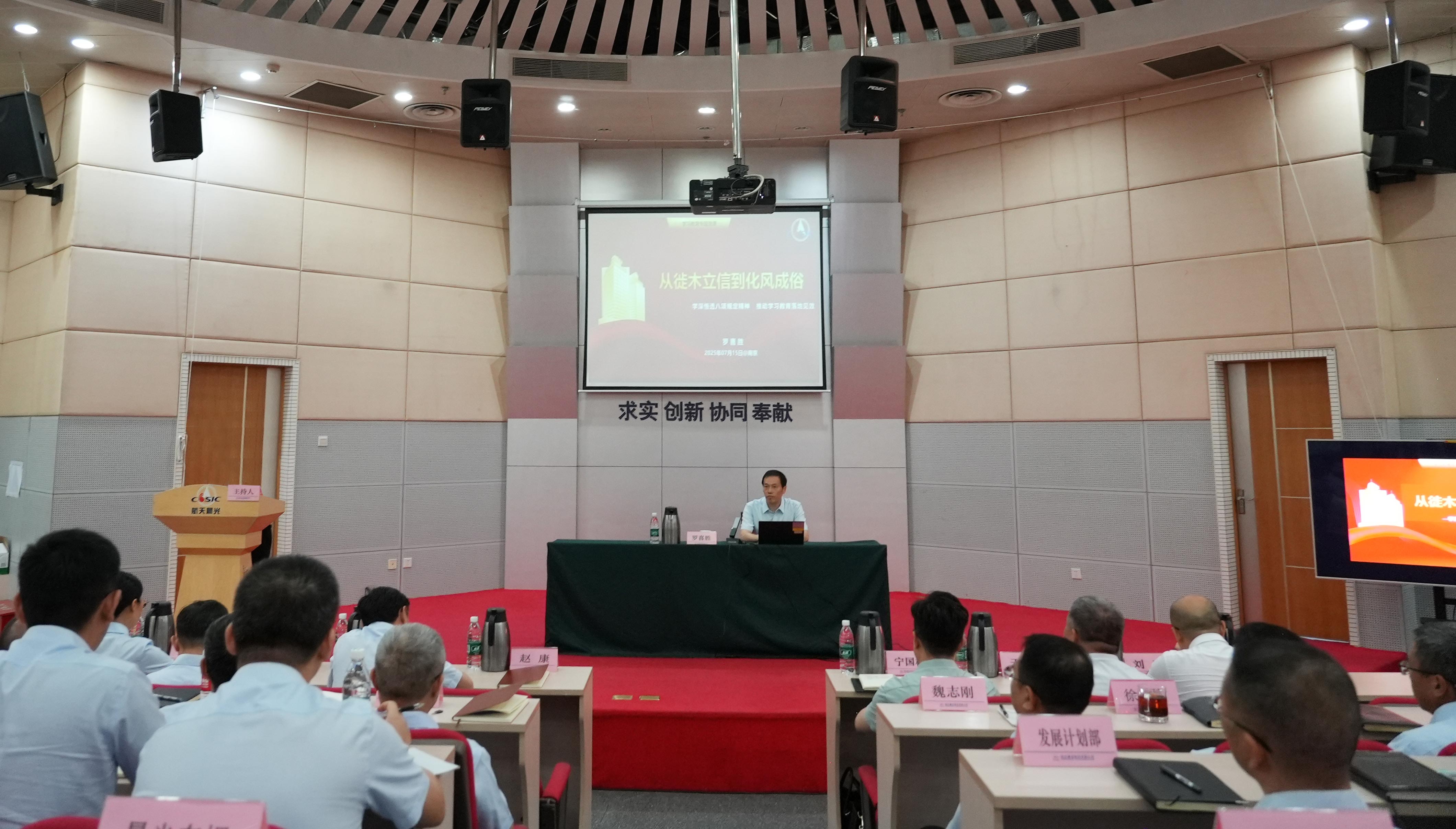 羅喜勝以《從徙木立信到化風(fēng)成俗 學(xué)深悟透中央八項(xiàng)規(guī)定精神 推動(dòng)學(xué)習(xí)教育落地見(jiàn)效》為題,與黨員干部職工共同學(xué)習(xí)領(lǐng)會(huì)習(xí)近平總書(shū)記關(guān)于加強(qiáng)黨的作風(fēng)建設(shè)的重要論述和中央八項(xiàng)規(guī)定精神,引導(dǎo)黨員干部職工以優(yōu)良作風(fēng)凝心聚力、干事創(chuàng)業(yè),為打造“不一樣的航天科工”貢獻(xiàn)更多航天晨光力量。